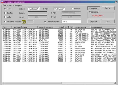 faixa entre contas, faixa entre valores, histórico padrão ou parte do