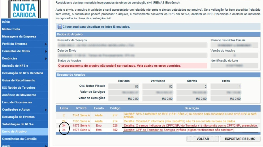 Histórico do arquivo
